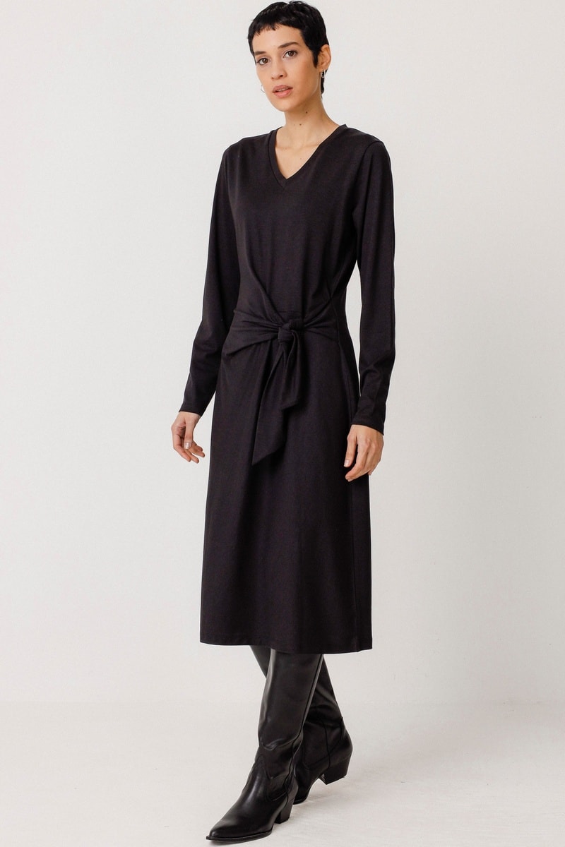 Vestido midi em algodão biológico Luar - Preto