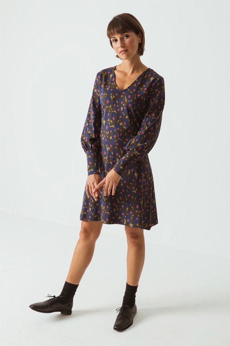 Vestido trapézio em algodão biológico - Verde-azeitona e azul-marinho - Azul e verde