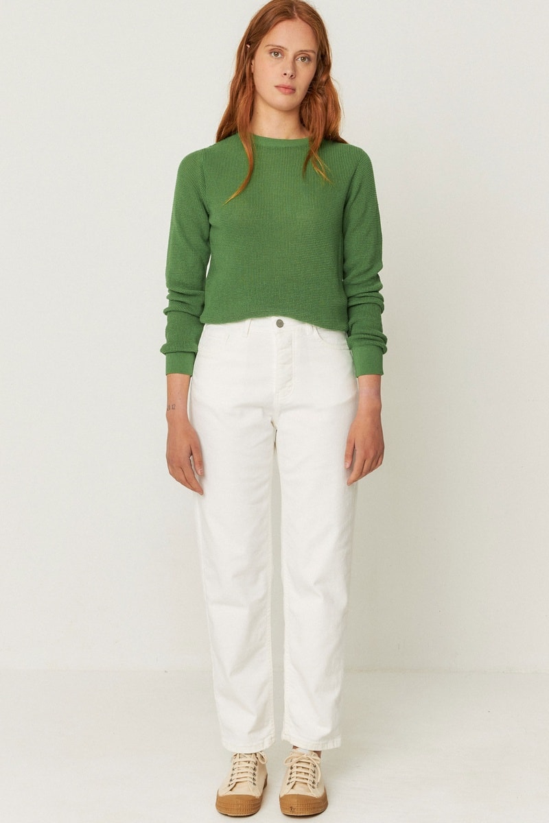 Calças direitas de cintura alta em algodão biológico Ania - Branco