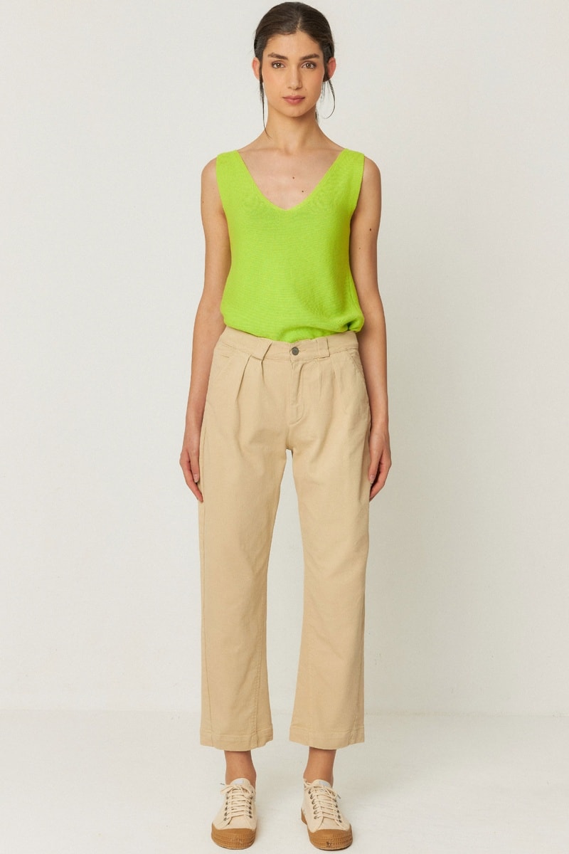 Calças 7/8 de cintura alta em algodão biológico Amata - Bege