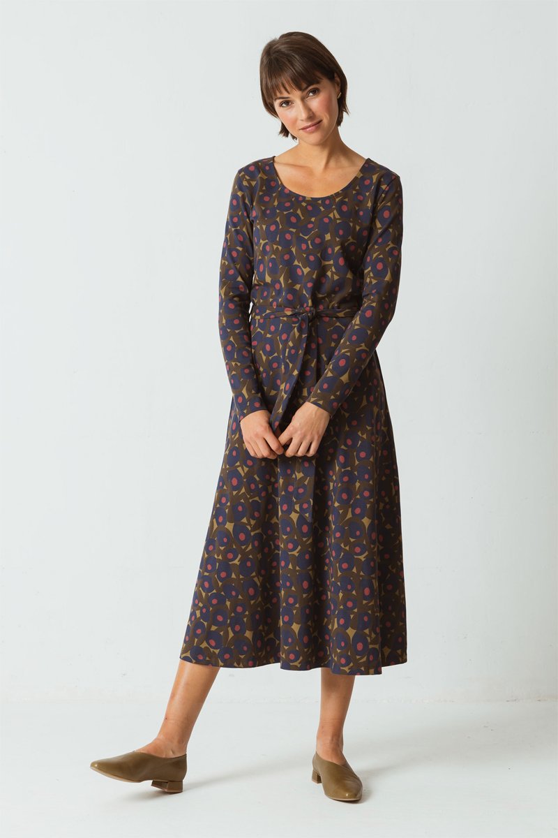 Vestido midi em algodão biológico - Verde-azeitona e azul-marinho - Azul e verde