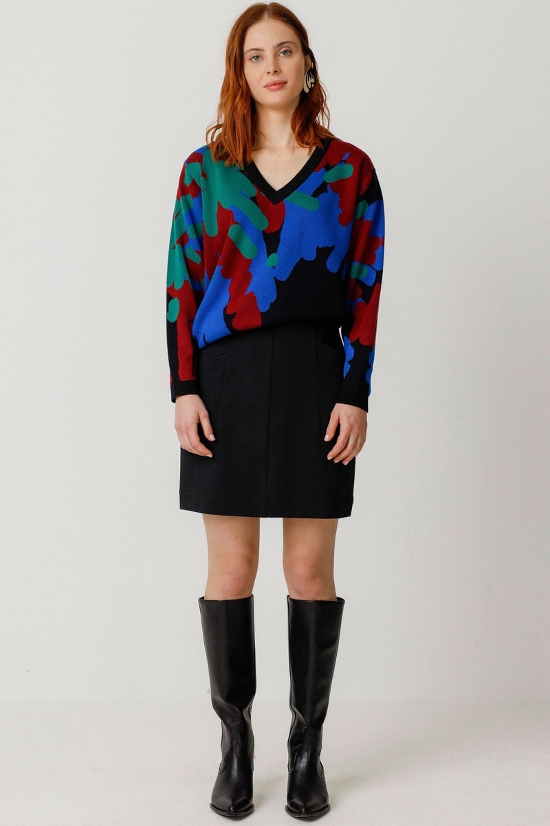 Saia direita cintura alta Amale - Preto