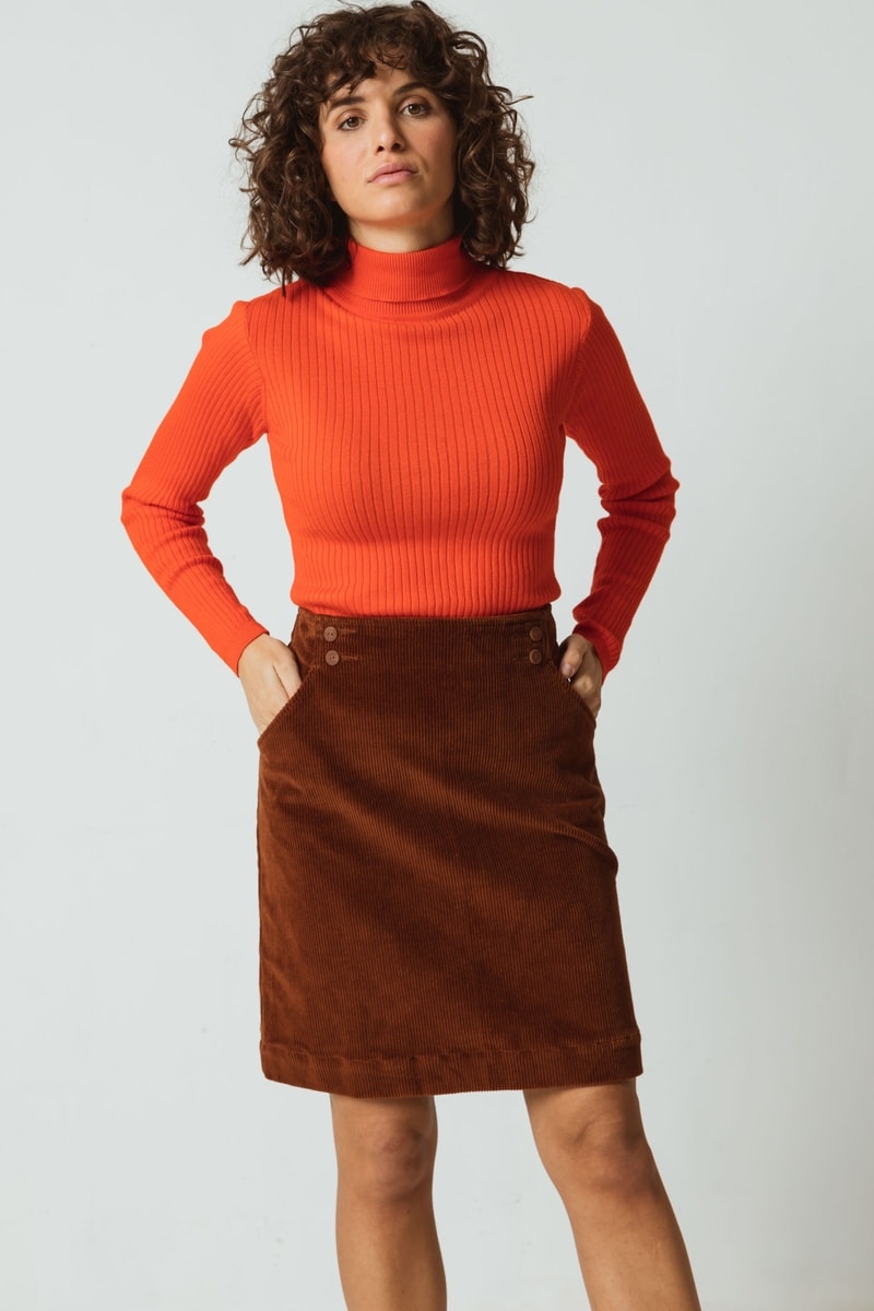 Saia trapézio em veludo em algodão biológico cintura alta Kexaa - Castanho