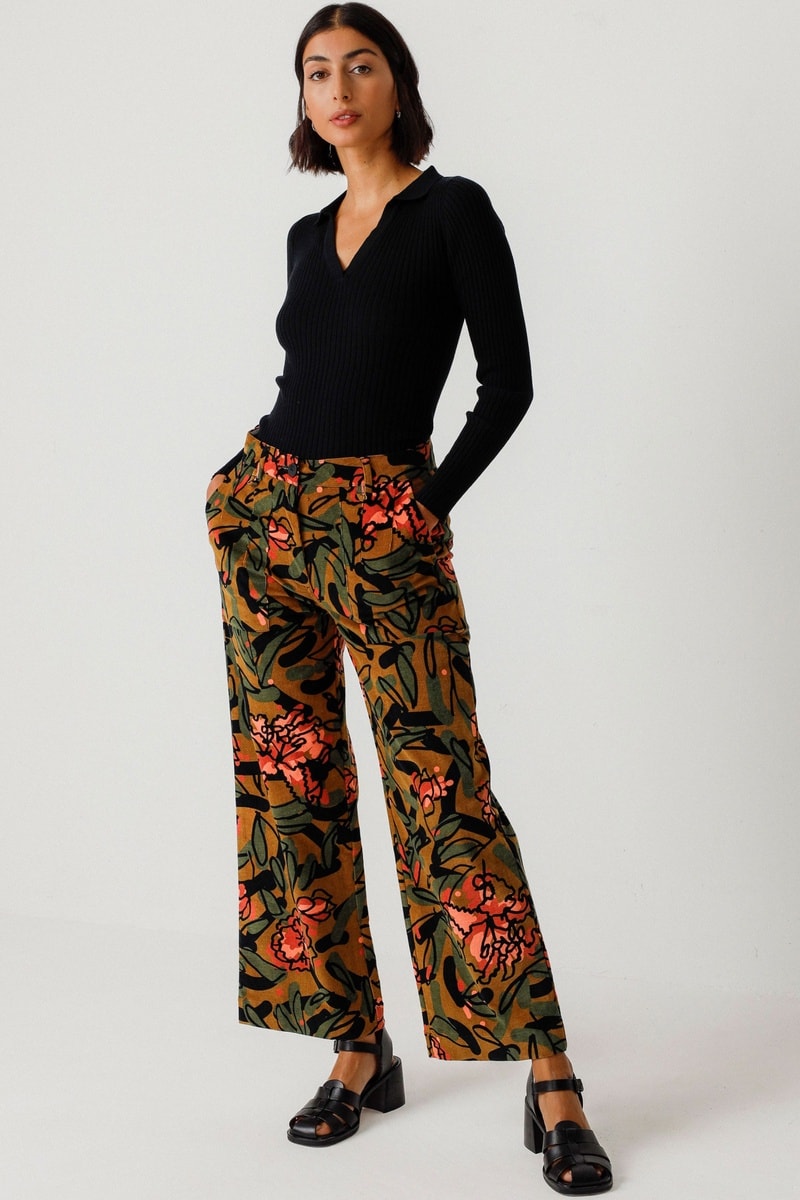 Calças direitas em veludo e algodão biológico de cintura alta Iarza - Multicor