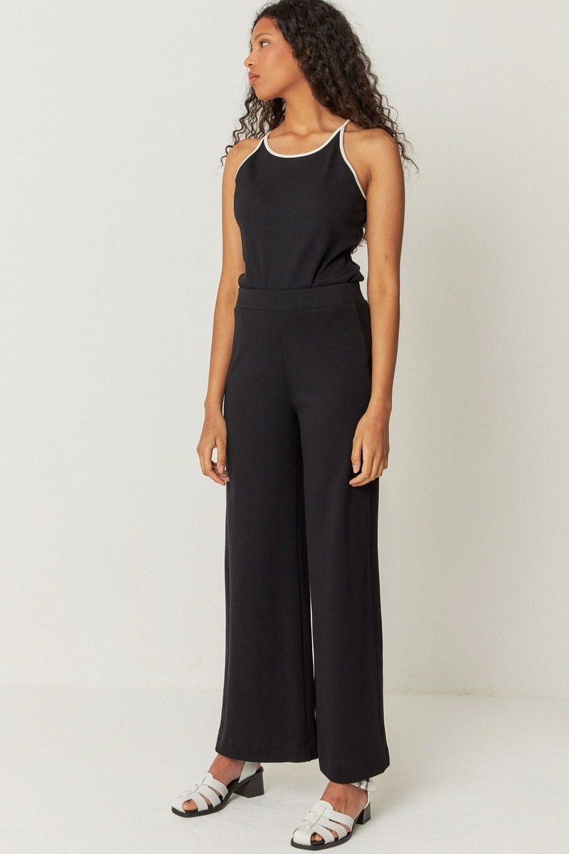 Calças direitas de cintura alta em algodão biológico Elixi - Preto