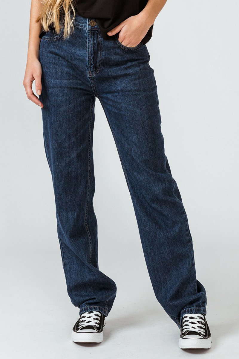 Calças de ganga direitas em algodão biológico - Azul-escuro - Azul