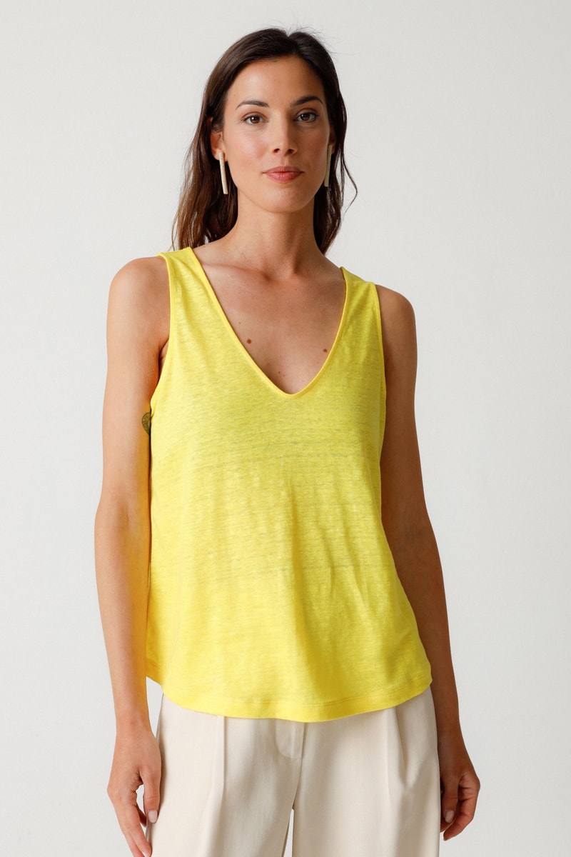 Camisola de alças em linho Araia - Amarelo