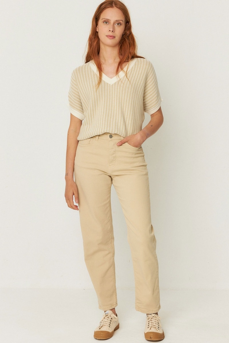 Calças direitas de cintura alta em algodão biológico Ania - Bege
