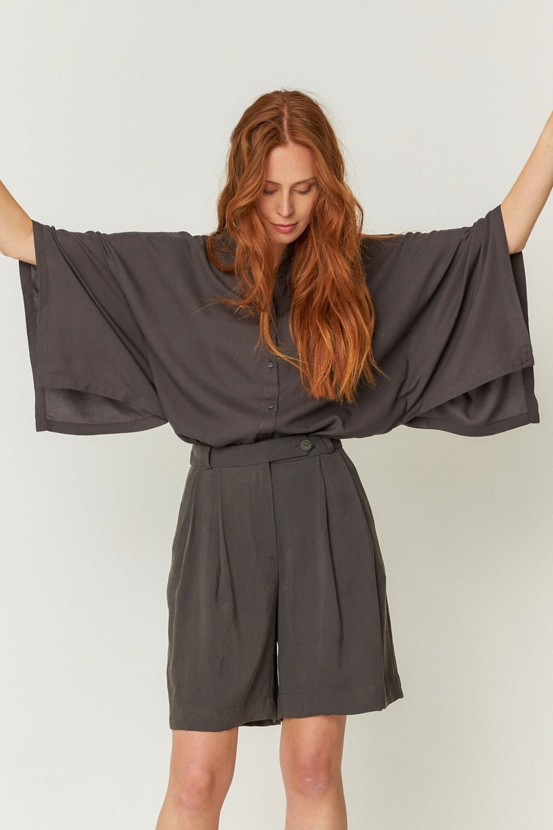 Bermudas de cintura alta Laida - Cinzento