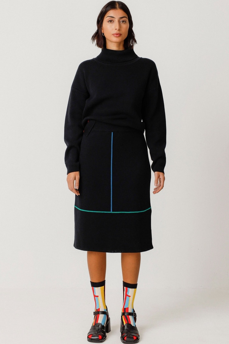 Saia direita em algodão biológico cintura alta Alda - Preto