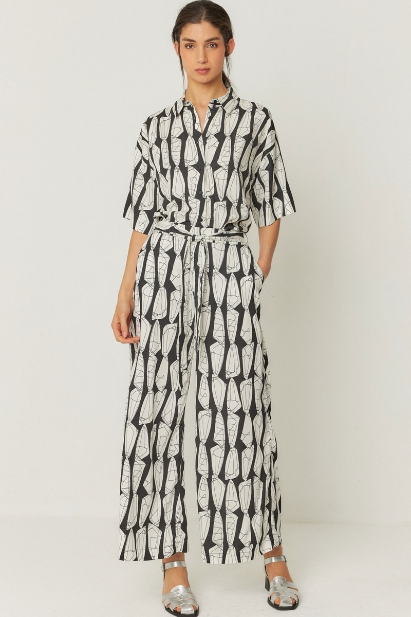 Calças palazzo Dona - Branco e preto