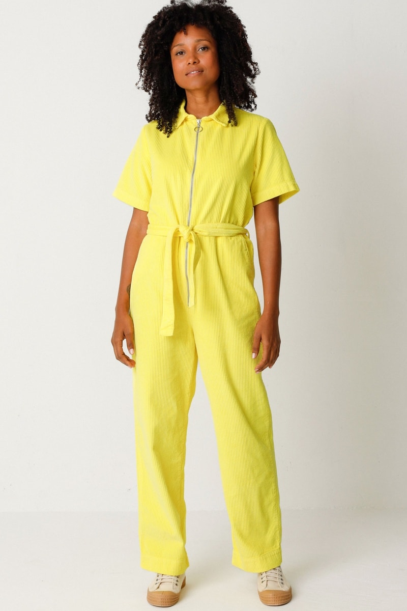 Macacão em veludo de algodão biológico Igarne - Amarelo