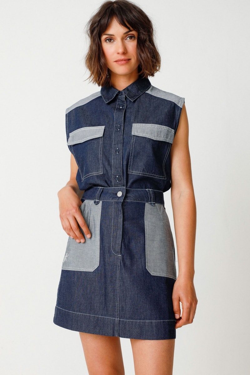 Saia direita em ganga e cintura alta em algodão biológico Demiku - Azul