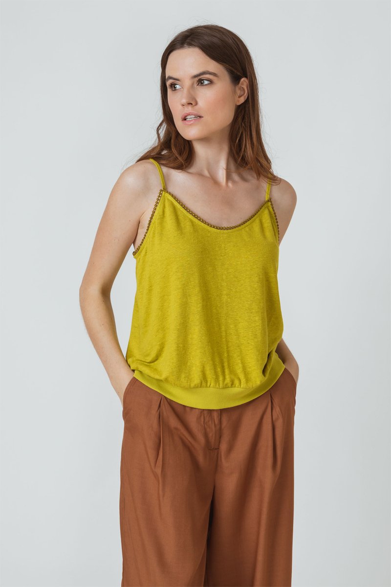 Top em linho - Verde-lima - Verde-claro