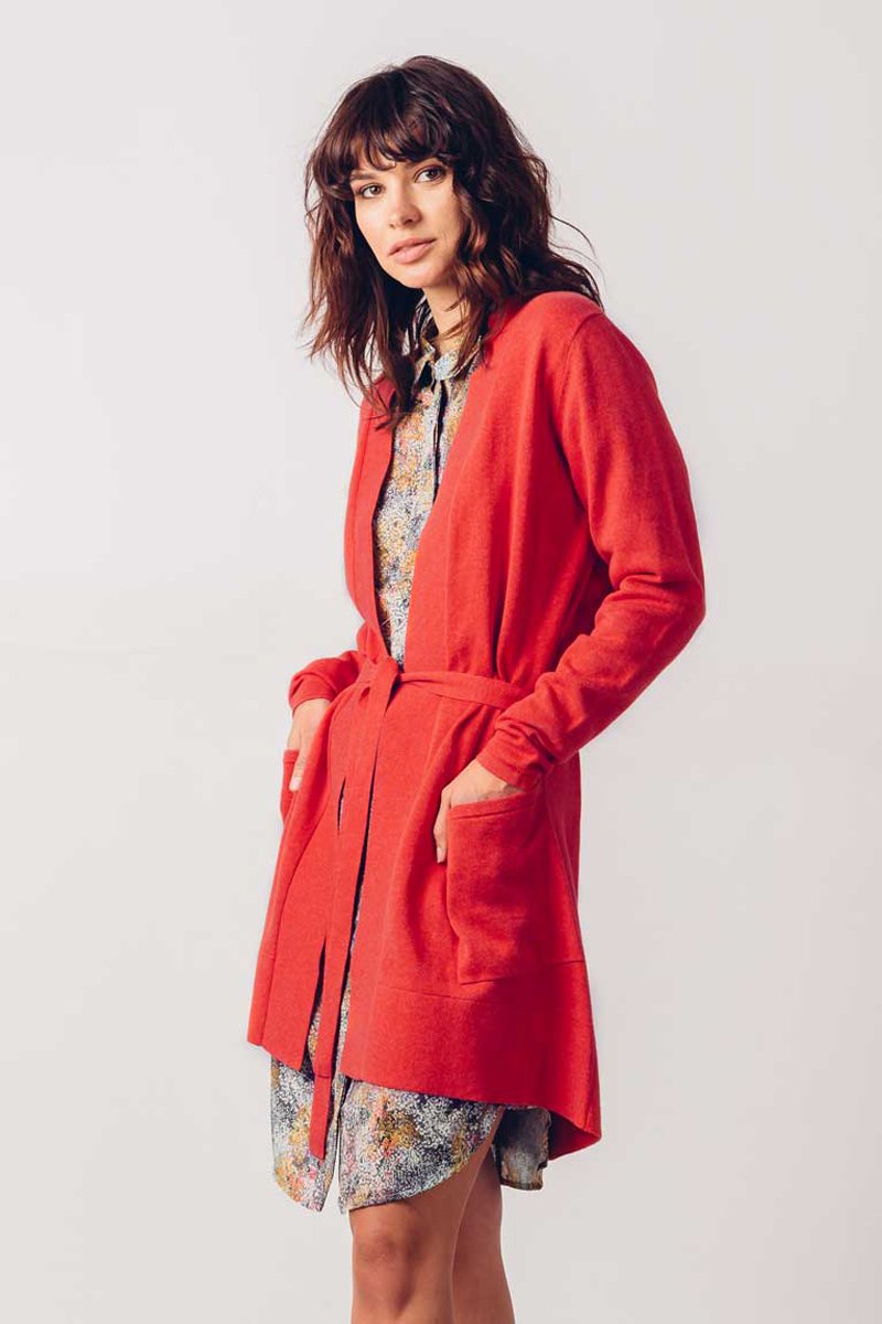 Casaco de malha comprido em algodão biológico Hegoa - Vermelho - Vermelho