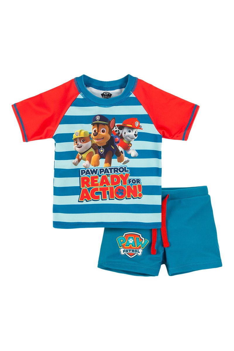 T-shirt e boxers de banho Chase, Marshall e Ruben Patrulha Pata - Azul-rei e turquesa