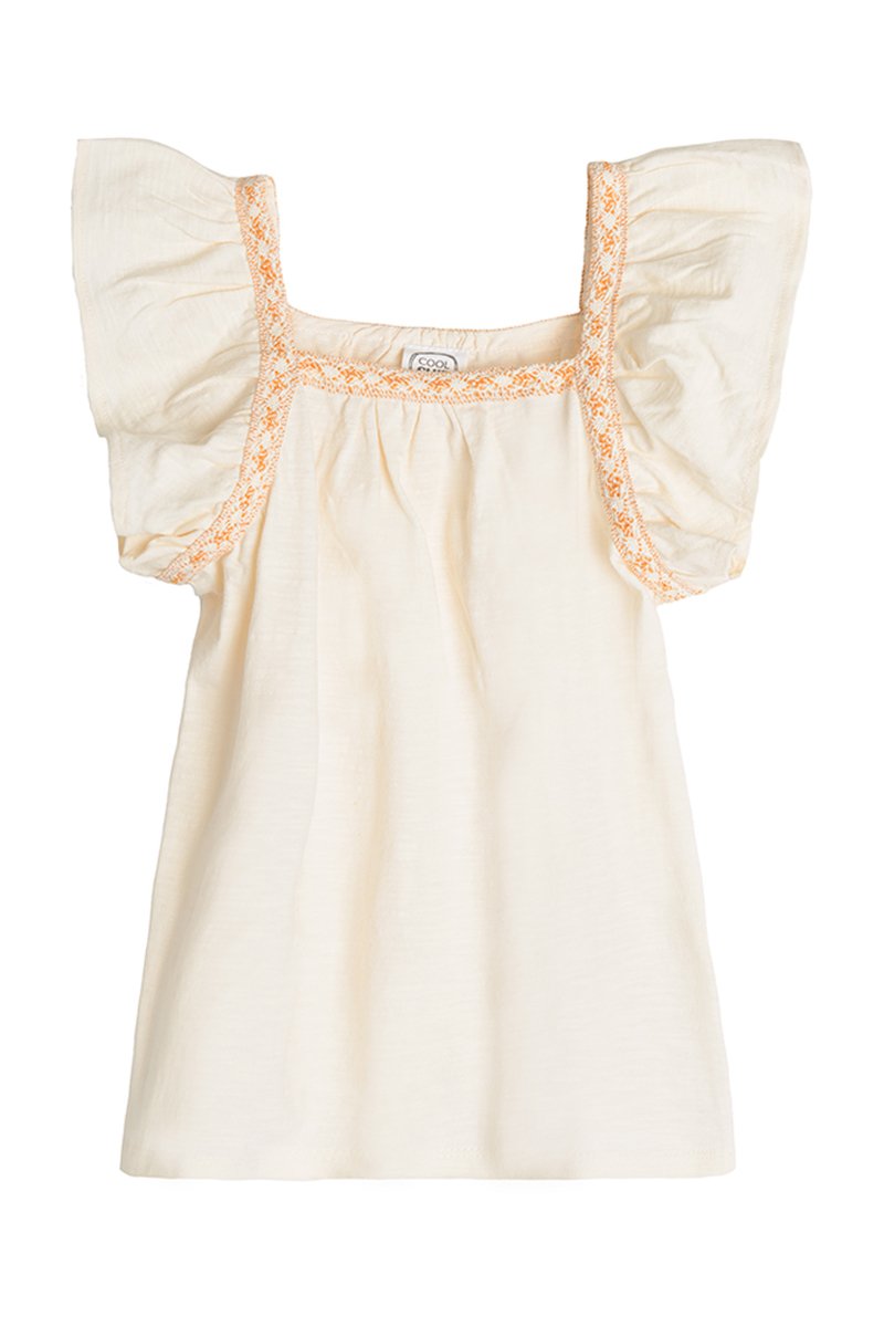 Blusa de mangas curtas com folhos.