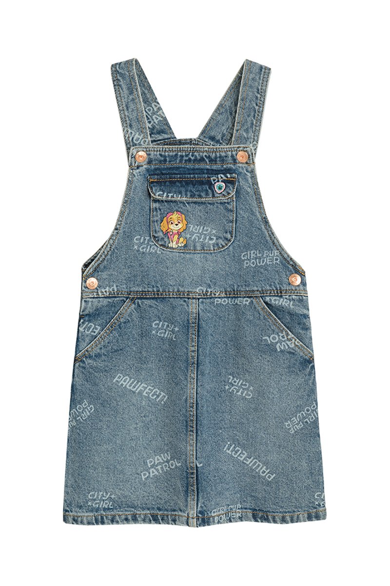 Vestido-jardineiras de ganga Stella Patrulha Pata - Azul