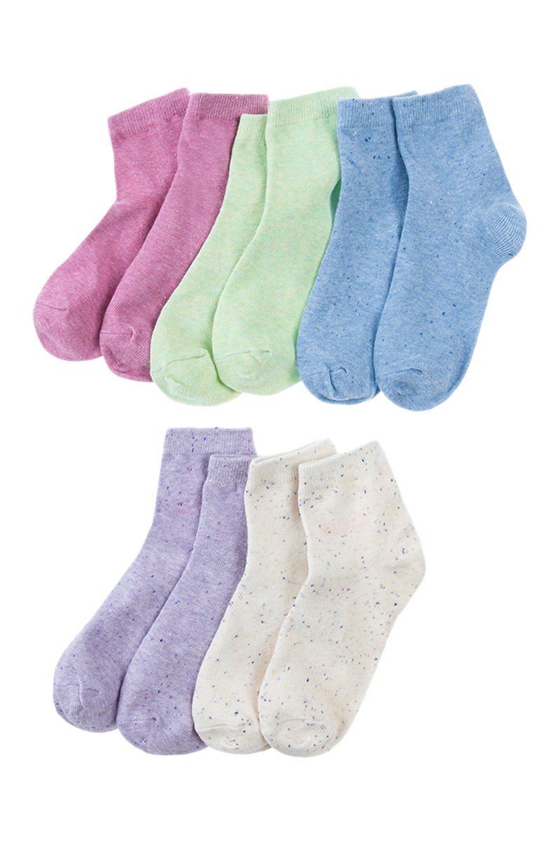 5 pares de meias - Rosa, verde-claro e azul-claro