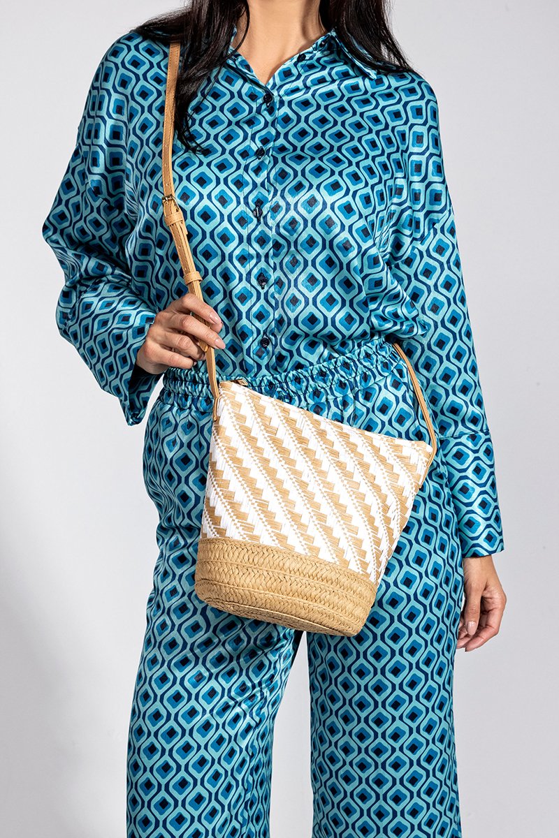 Mala a tiracolo - Branco e bege - Bege e branco