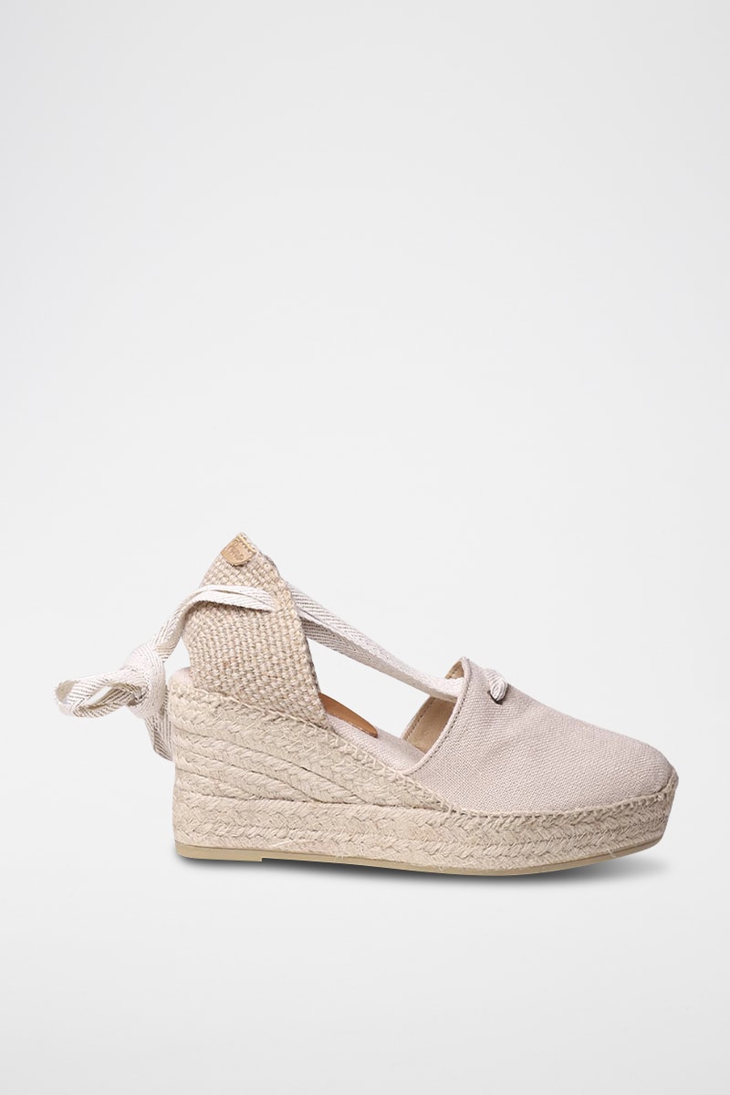 Sandálias com cunha em linho Lisa - Bege