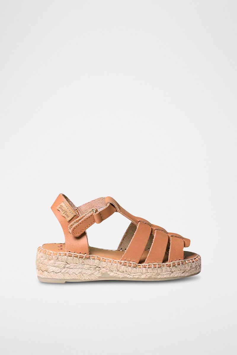 Alpargatas com plataforma em couro - Castanho - Castanho