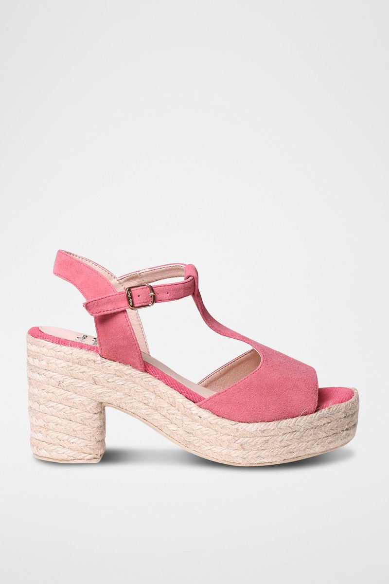 Sandálias com salto em couro Kely-A - Rosa - Rosa