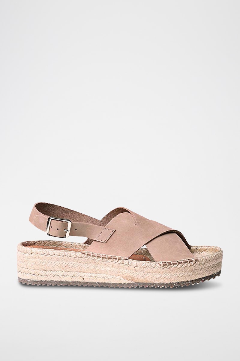 Sandálias com plataforma em couro.