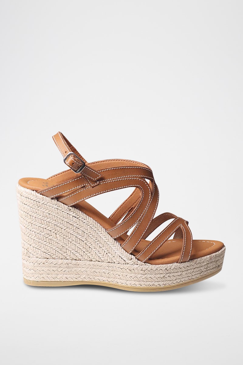 Sandálias com cunha em couro.