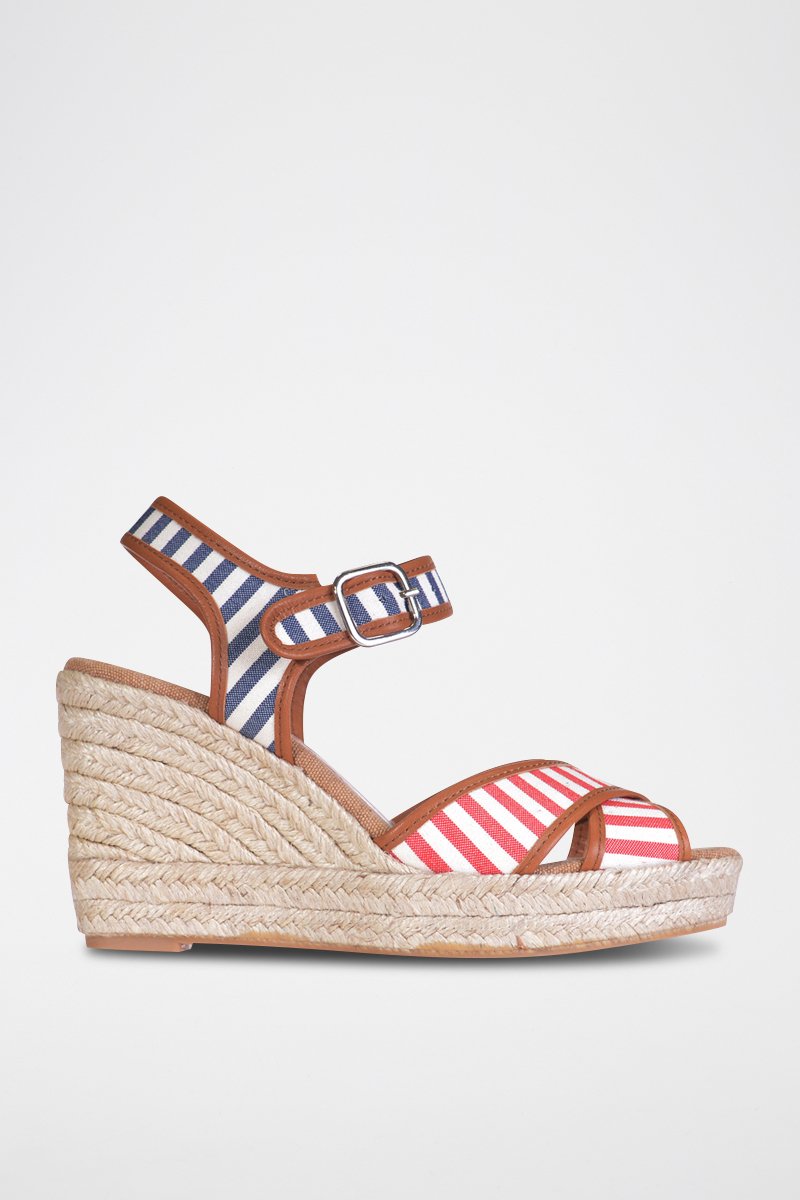 Alpargatas com cunha - Bege - Azul-marinho