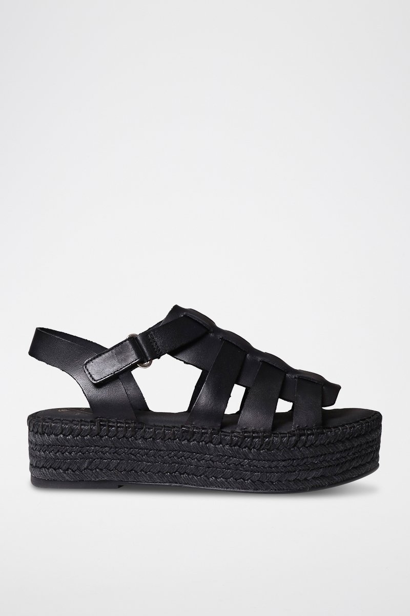 Alpargatas com plataforma em couro Angles - Preto - Preto