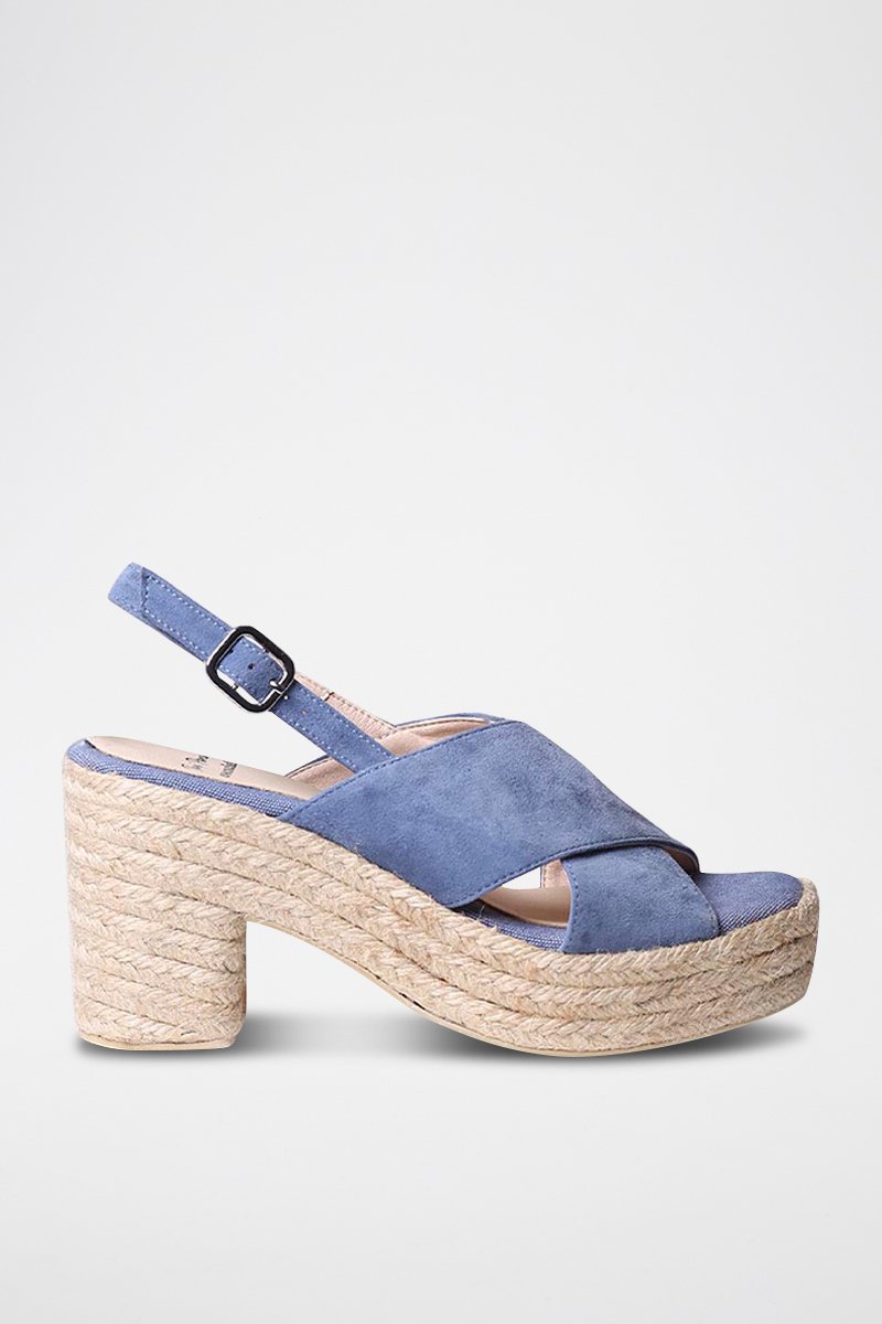 Sandálias com salto em couro Kenia-A - Camel - Azul