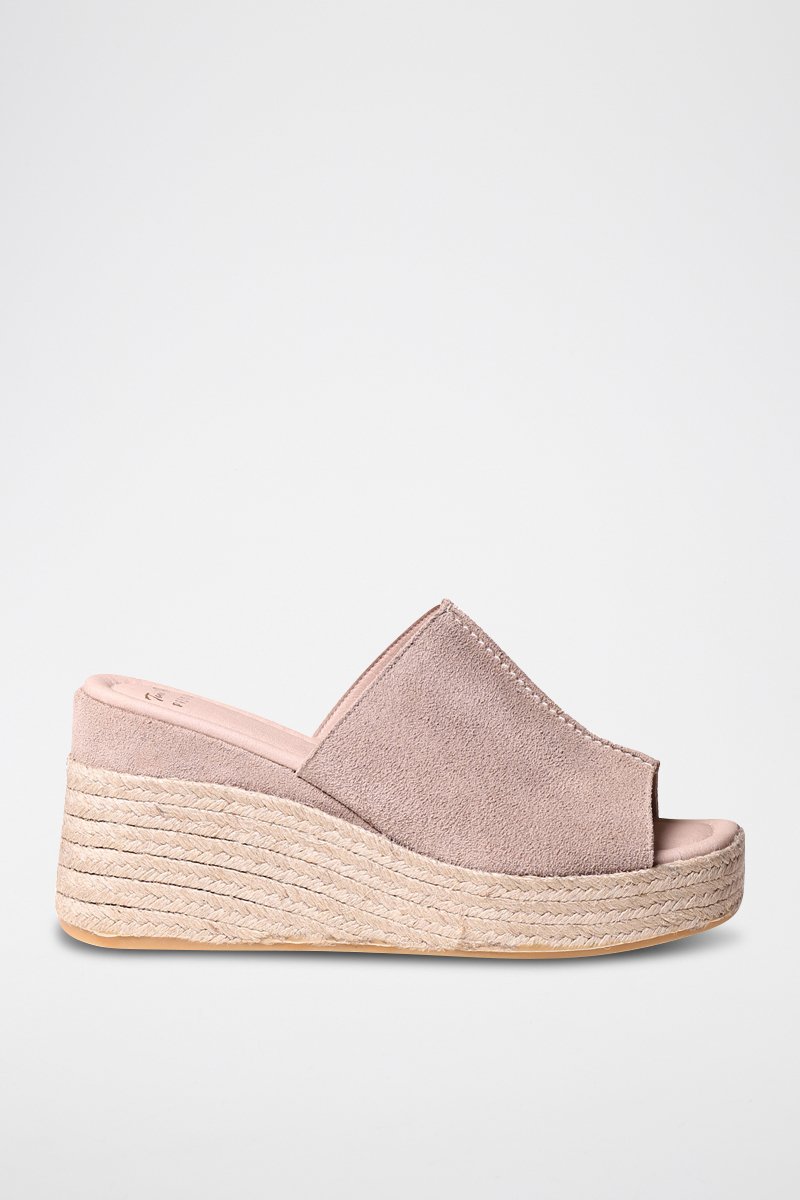 Mules com cunha em nobuck Miriam - Bege - Bege