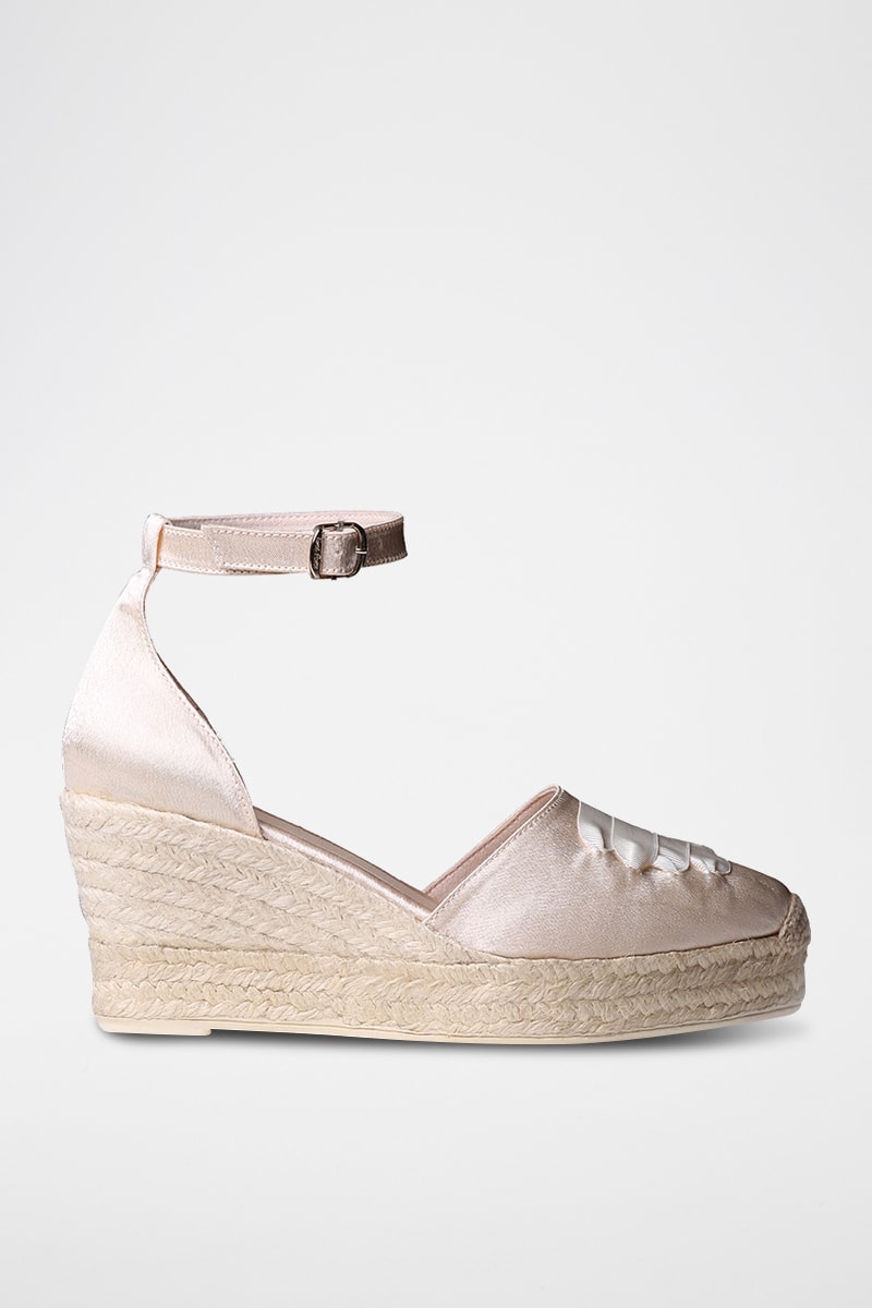 Sandálias com cunha em cetim.