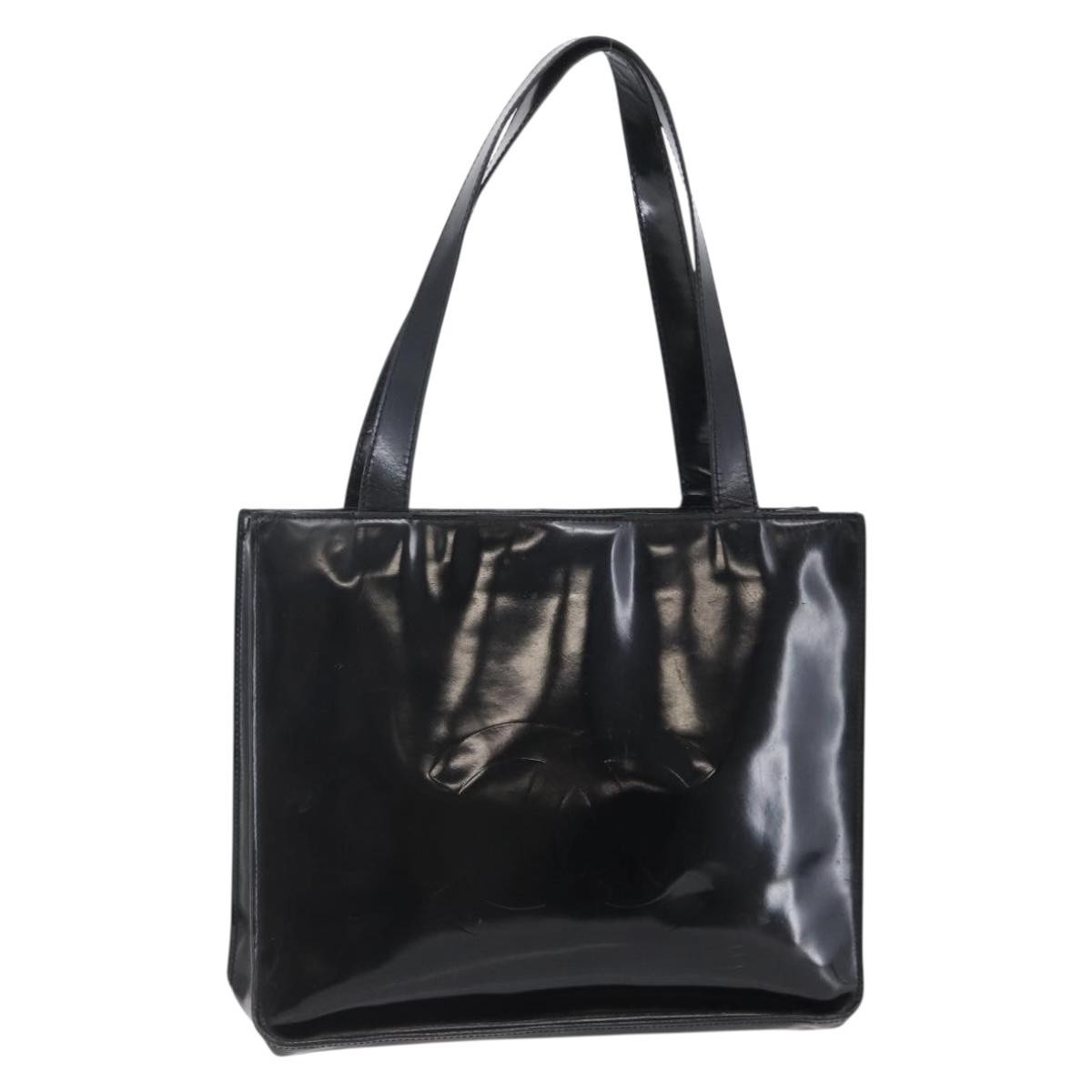 Bolsa de ombro em patente com logotipo em relevo vintage da Chanel