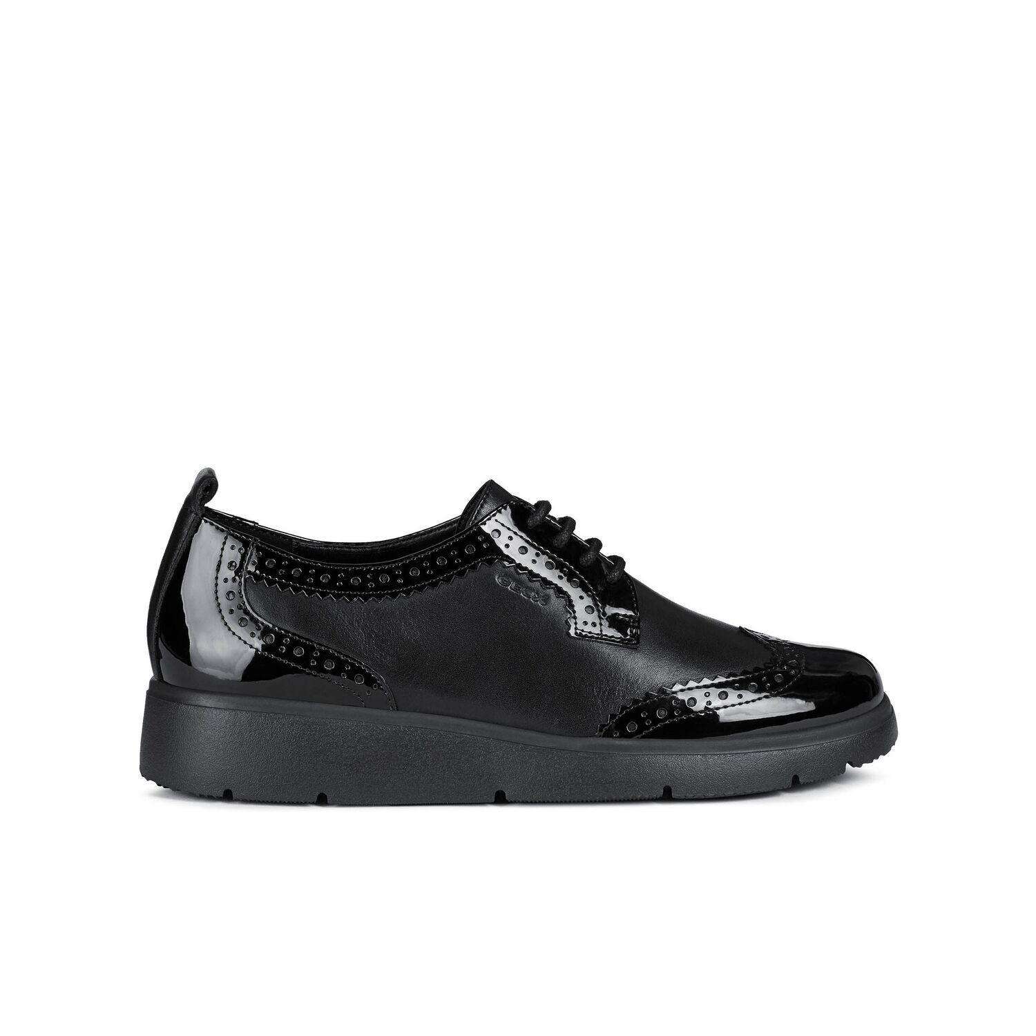 Calçado feminino confortável, respirável e ultra-amortecido. Em couro nappa e material efeito verniz total black, os Arlara apresentam um design híbrido adequado a todas as ocasiões. Contemporâneo e metropolitano, este modelo de conforto superior complementa todos os looks com uma elegância casual-chic. Tecnologia: - Estilo em movimento, bem-estar em todas as circunstâncias, graças ao sistema patenteado pela Geox que favorece a respiração, oferecendo conforto e proteção a cada passo. Composição: - Cabedal: 48% Couro-52% Sintético - Forro: 82% Couro-18% Sintético - Sola exterior: 100% Material Sintético - Sola interior: 100% Tecido Características: - Amortecimento ótimo que oferece proteção e absorção de impactos e esforços - Espessura da sola: 3 cm / 1,2" - Calçado leve - Fecho com atacadores