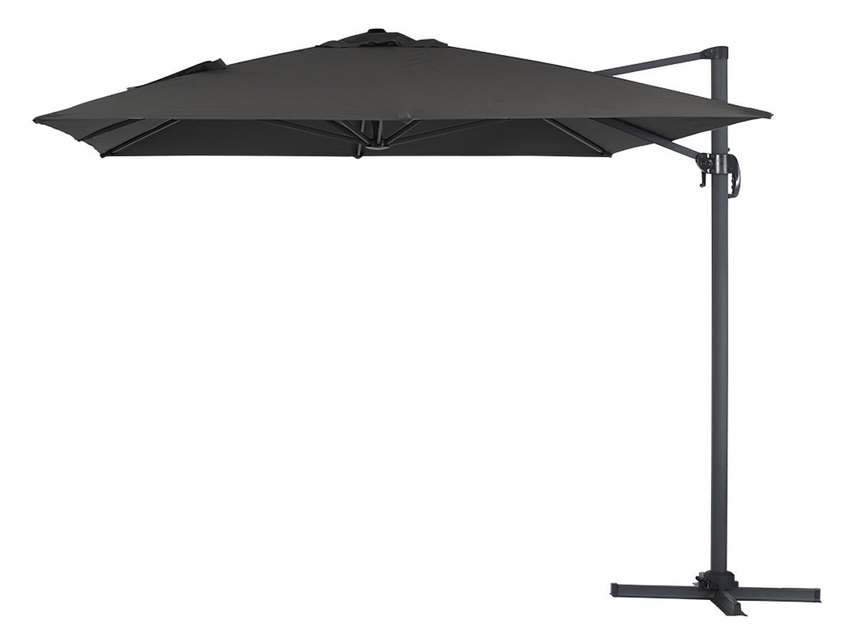 Ombrelone de jardim lateral Sun 4 - Estrutura de alumínio resistente à corrosão - Tecido de poliéster com tratamento anti - UV - Para se proteger do sol com o maior conforto, basta ajustar a altura e o ângulo de inclinação do seu ombrelone com uma manivela super prática . E ainda mais, com o uso de um pedal ele gira até 360°. - Não se esqueça de fechar seu ombrelone quando não estiver mais usando e guarde em local seco e/ou cubra com uma capa protetora. .Cor:Preto.Tela:Preto.Mastro:Cinza.Armação:Cinza.Tela:Poliéster - Densidade 250 g / m².Estructura:Alumínio.Base:Alumínio.Ombrelone:3 x 4 x 3 m - Fechado : 0.5 x 0.3 x 2.8 m.Peso:23 kg.Tamanho:3 x 4 m.Tela:3 x 4 m.Mastro:53 x 77 mm - Altura : 260 cm.Armação:8 bipartições - Espessura 1 mm - Alumínio.Base:100 x 100 x 6 cm (Em cruz).- Rotação de 360°, reclinável e dobrável - Impermeável - Anti-UV - Anti-corrosão - Saída de ar no topo.Tipo de mastro:Lateral.Remessa:1 pacote : - 2,64 x 0,39 x 0,15 m, 26 kg.