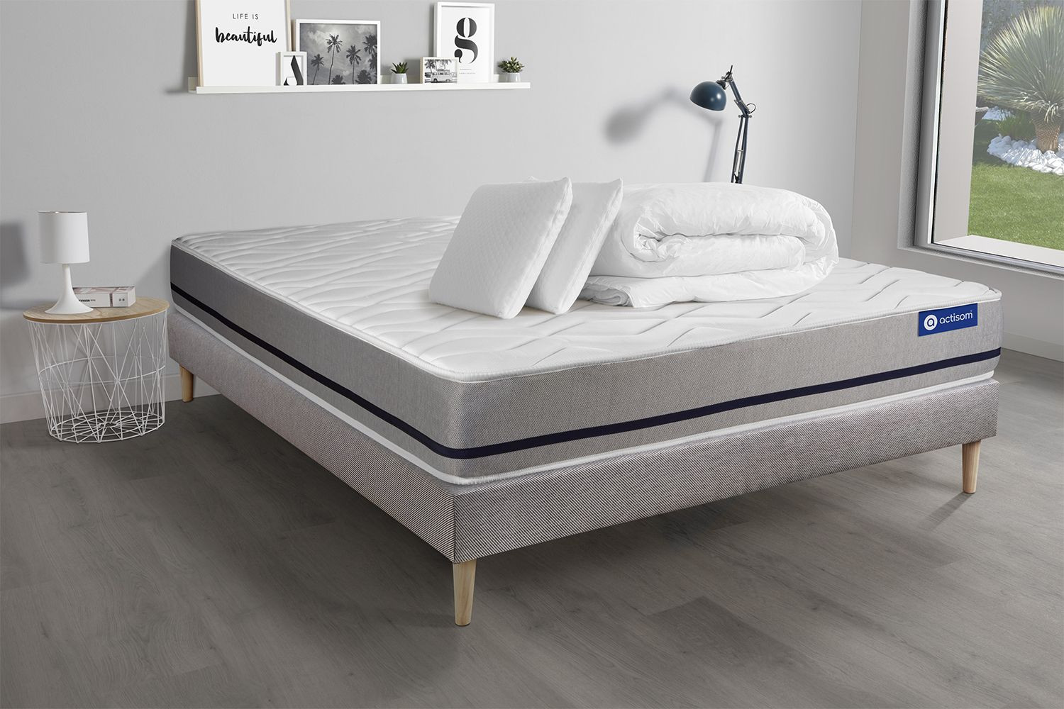 Pacote de cama completo - Colchão 160x200 cm + estrado de molas com ripas (kit) + 2 almofadas + Edredão - Actilatex Soft