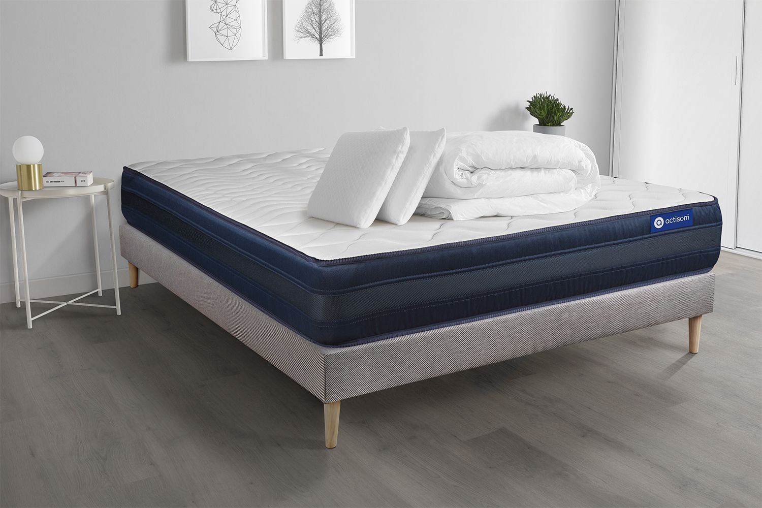 Pacote de cama completo - Colchão 200x200 cm + estrado de molas com ripas (kit) + 2 almofadas + Edredão - Actilatex Tech