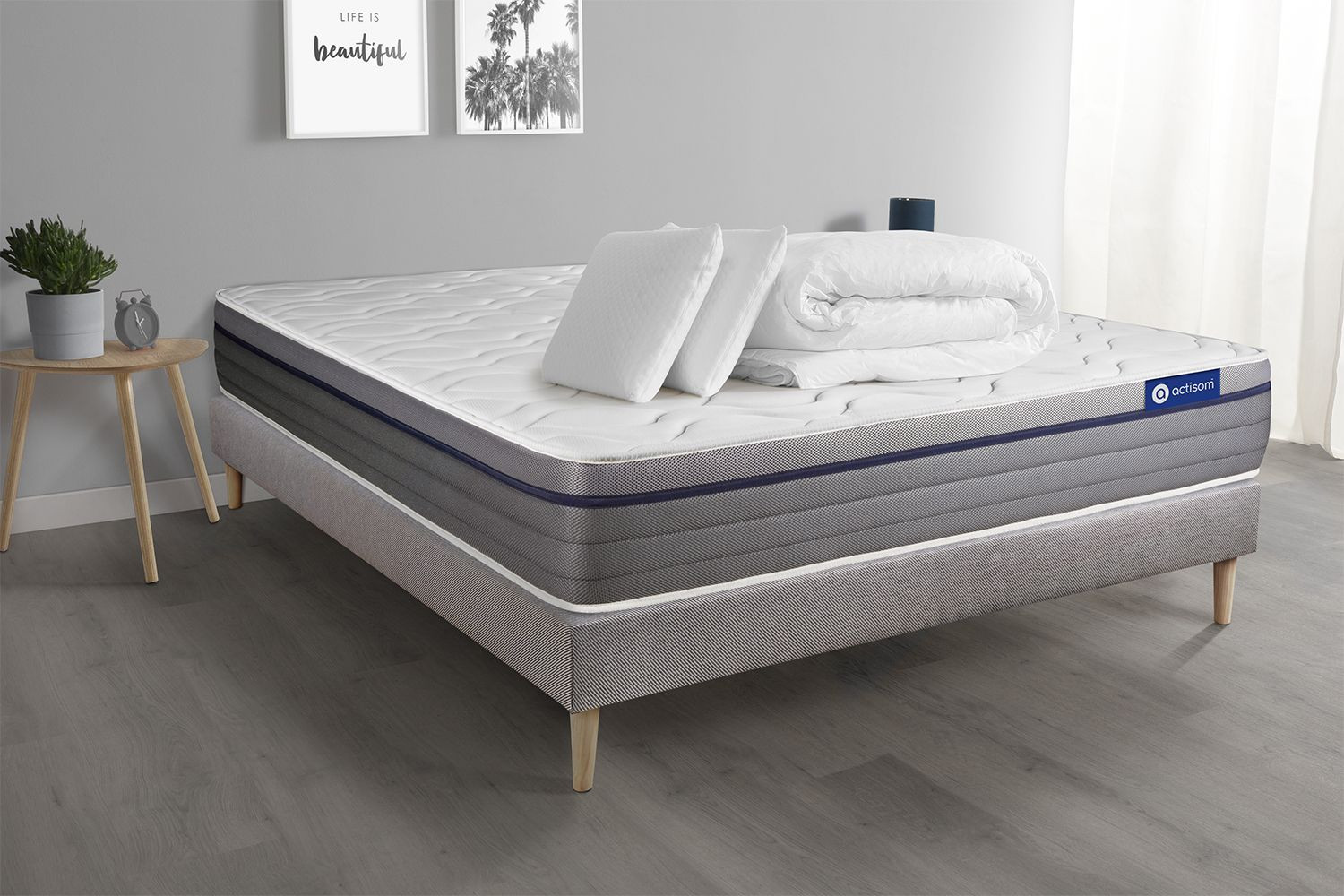 Conjunto completo de cama - Colchão 180x200 cm + estrado de molas com ripas (kit) + 2 almofadas + edredão - ActiMemo Zen