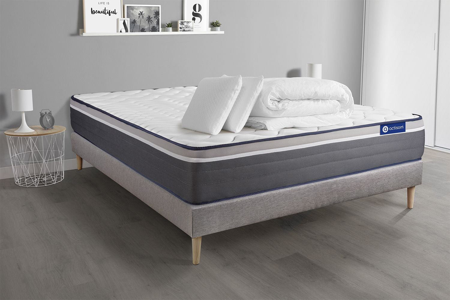 Conjunto completo de cama - Colchão 160x200 cm + estrado de molas com ripas (em kit) + 2 almofadas + edredão - ActiMemo Plus