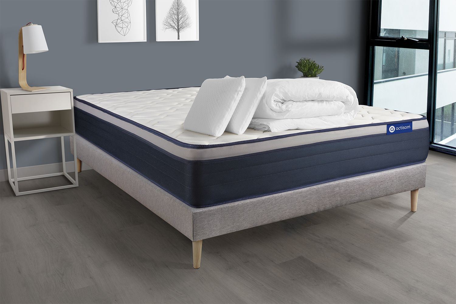 Conjunto completo de cama - Colchão 180x200 cm + estrado de molas com ripas (kit) + 2 almofadas + edredão - Actiflex Max