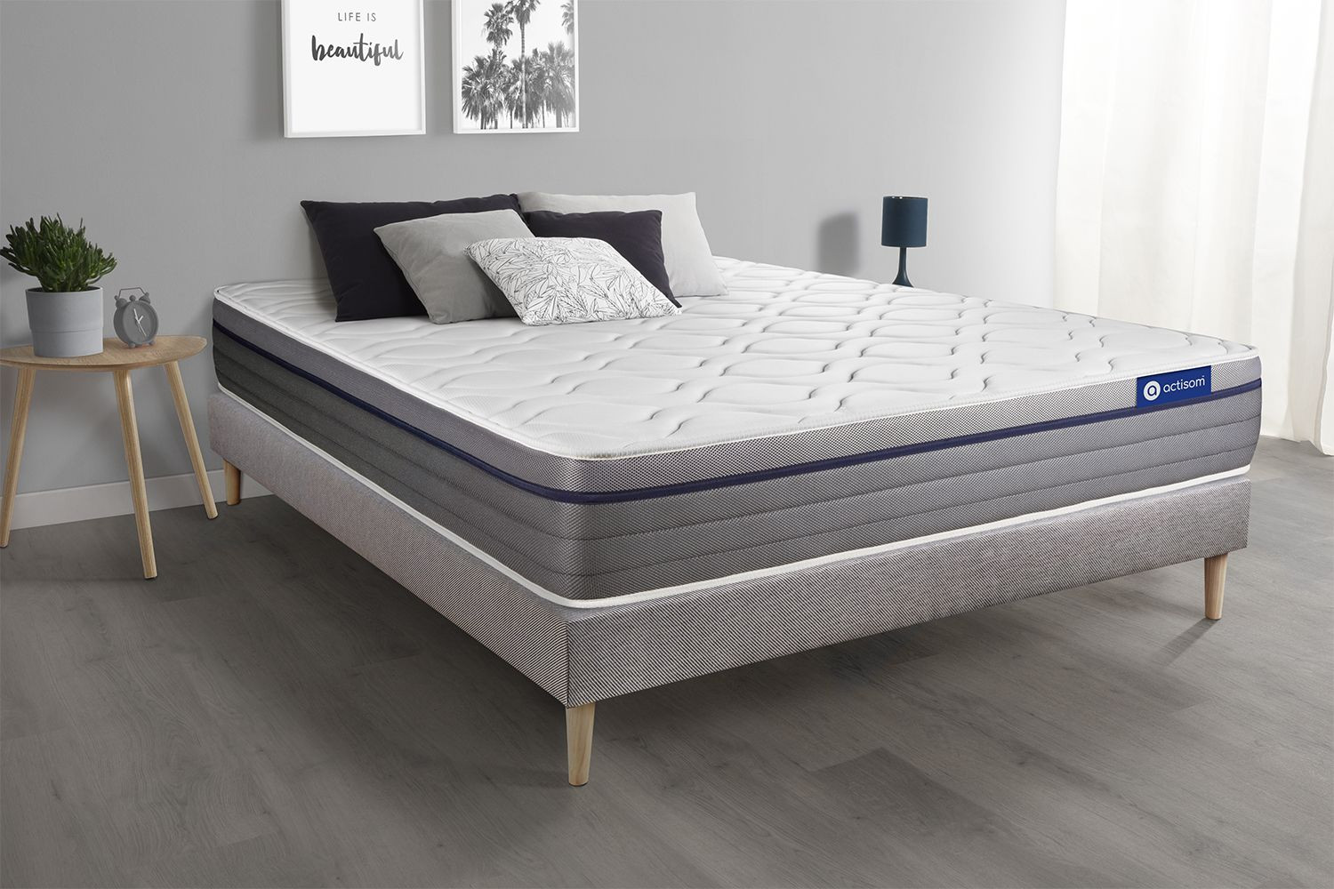 A opinião do nosso especialista: O colchão Actimemo ZEN tem uma espessura máxima de 26 cm. O seu acolchoamento de espuma viscoelástica, em ambas as faces de verão e inverno, elimina os pontos de pressão. O seu núcleo de espuma de alta densidade com 7 zonas de conforto proporciona um apoio firme, ideal para a posição adequada das costas. Possui tecnologia ActiFresh, que absorve a humidade e regula a temperatura.