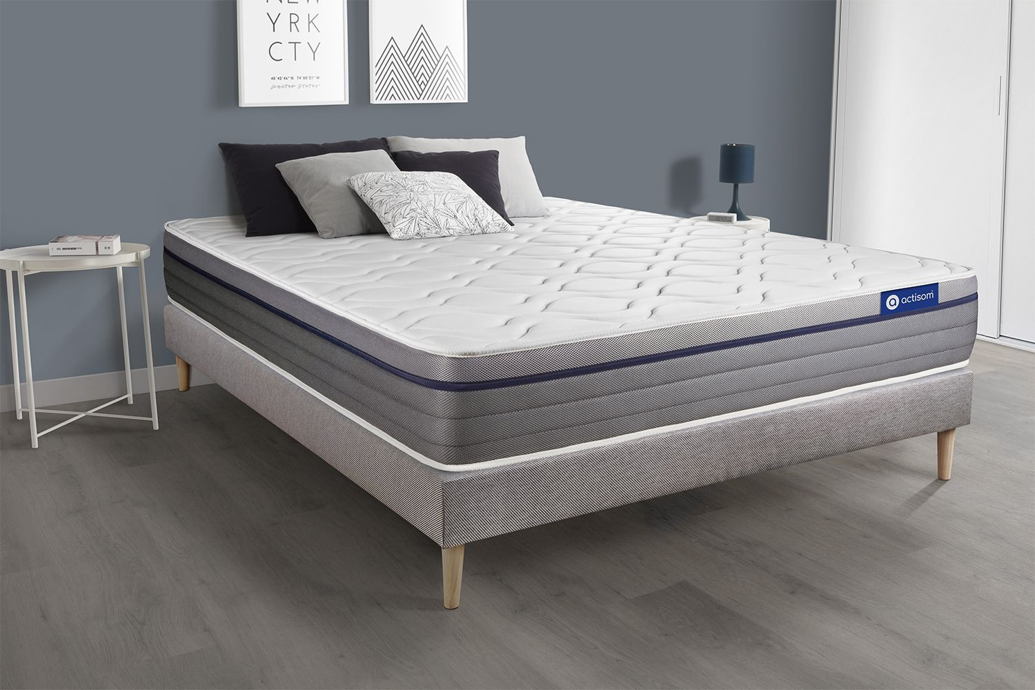 A opinião do nosso especialista: Um dos melhores modelos da marca ACTISOM. O colchão Actiflex ZEN com uma espessura máxima de 26 cm oferece, graças à sua espuma viscoelástica e às suas molas ensacadas, um conforto excecional, enquanto se mantém firme. O seu corpo regenera-se naturalmente graças à termorregulação dos materiais de enchimento. Garante um sono de qualidade.