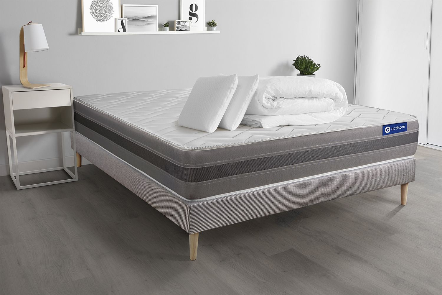 Pacote de cama completo - Colchão 140x200 cm + estrado de molas com ripas (kit) + 2 almofadas + Edredão - Actilatex Relax