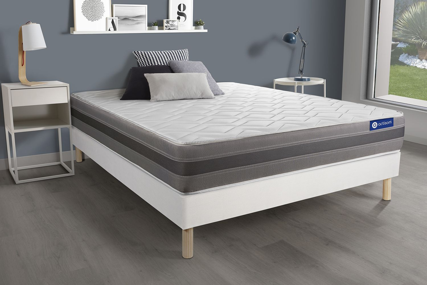Conjunto de Estrado Branco + Colchão ACTISOM Actiflex Relax (160x200 cm - molas ensacadas y Viscoelástica- Altura: 24 cm)