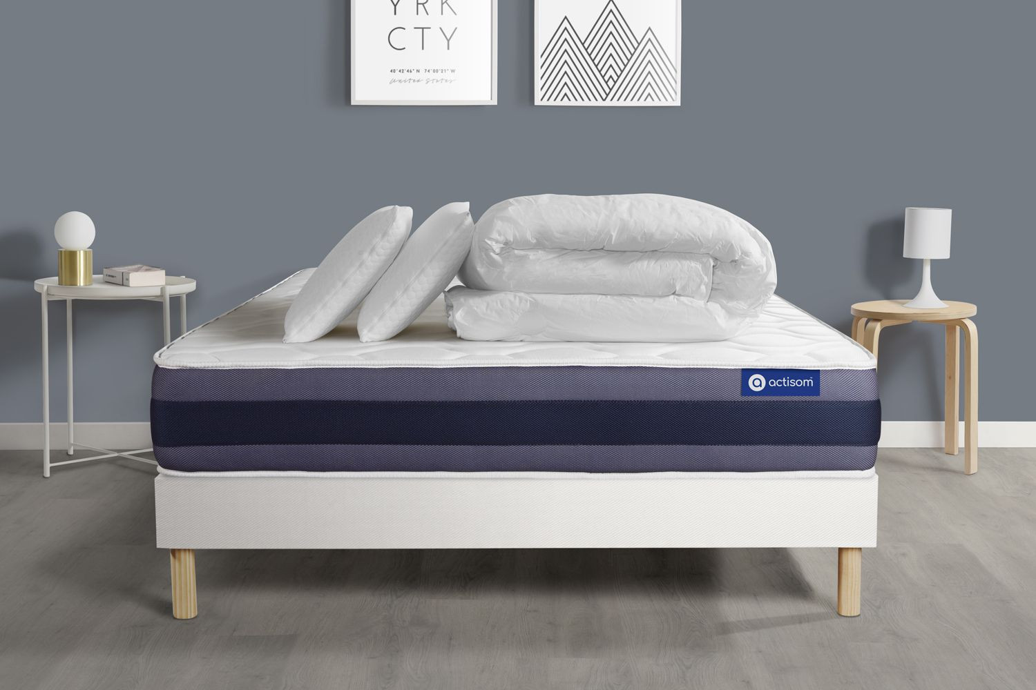 Conjunto completo de cama - Colchão 180x200 cm + estrado de molas com ripas (kit) + 2 almofadas + edredão - Actiflex Morpho