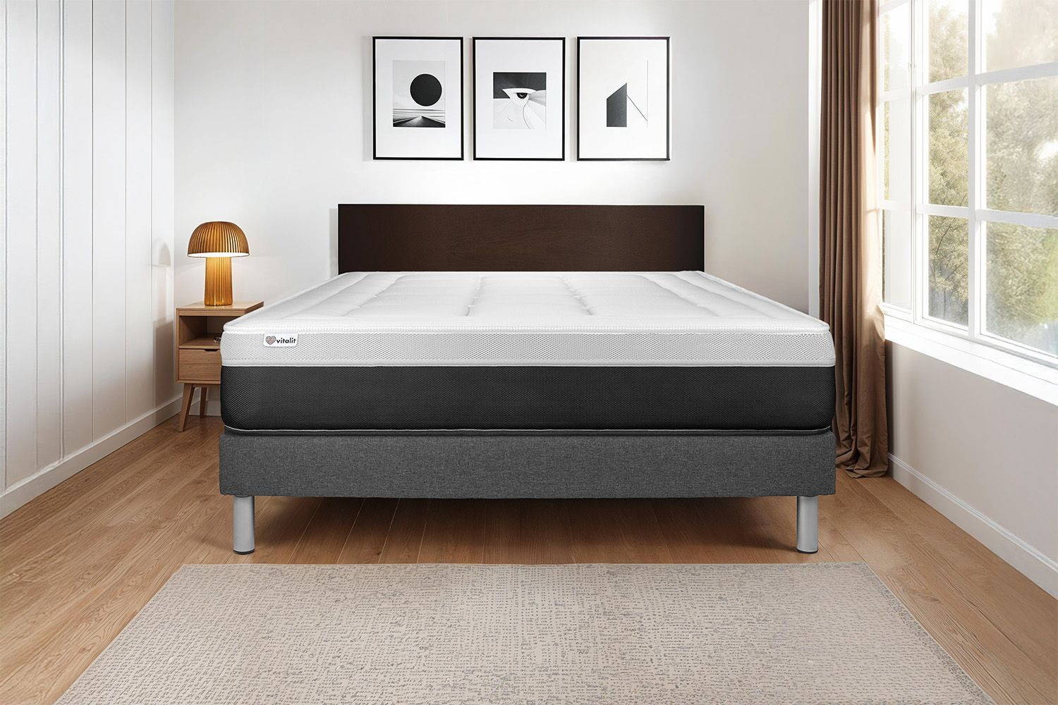 Conjunto de estrado gris + Colchão VITALIT VITAL FORM ( 140 x 200 cm - Molas ensacadas e espuma viscoelástica )