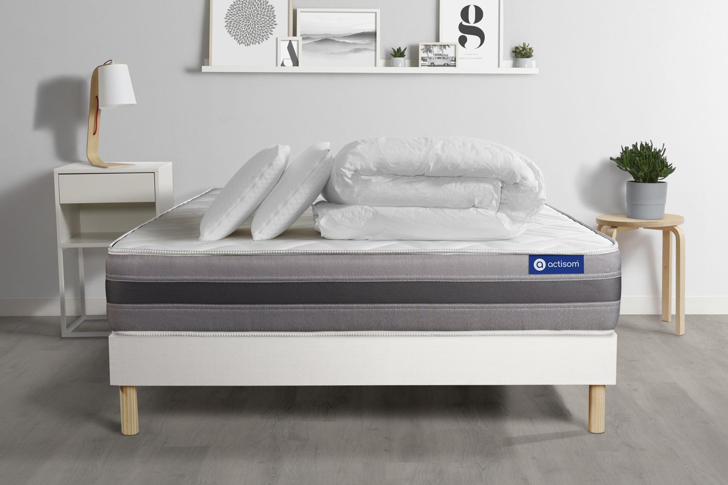 Pacote de cama completo - Colchão 140x190 cm + estrado de molas com ripas (kit) + 2 almofadas + Edredão - Actilatex Relax