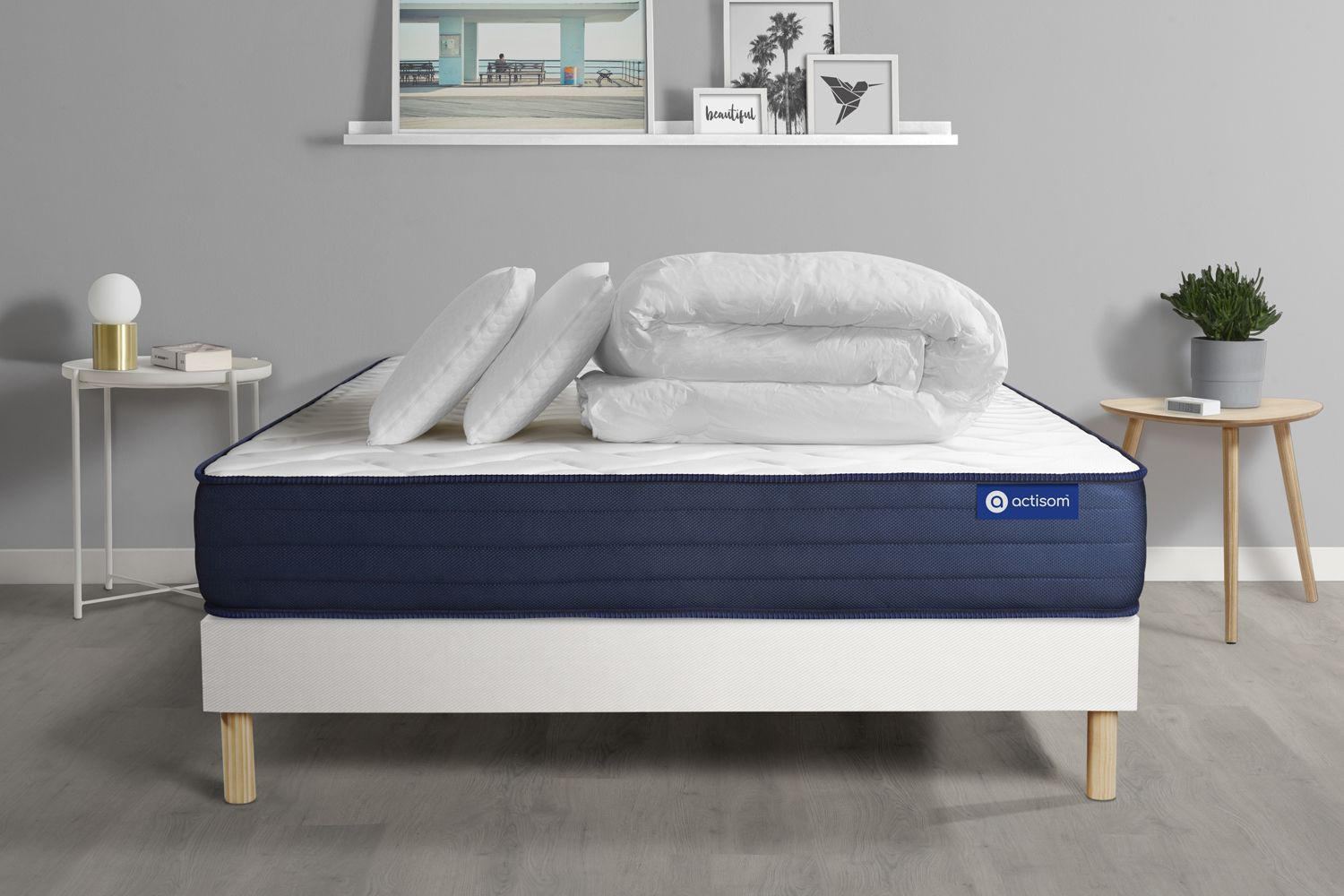 Conjunto completo de cama - Colchão 140x190 cm + estrado de molas com ripas (kit) + 2 almofadas + edredão - Actimemo Life